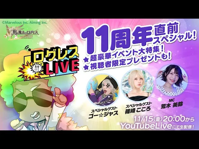 「剣と魔法のログレスいにしえの女神」ログレスLIVE/11周年直前スぺシャル![MC:荒木美鈴さんゲスト:ゴー☆ジャスさん、篠崎こころさん]https://ww…
