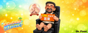 ドクターフットは2025年12月31(水) は新橋本店・新宿東口店・神田店が10:00〜18:00営業し、浜松町店はお休みとなります。1月1日(木)は新橋本店が通常営業いたします。また2日(金)〜3日(土)は新橋本店と新宿東口店が通常営業、他店舗は臨時休業となります。4日(日)からは全店通常営業いたします。